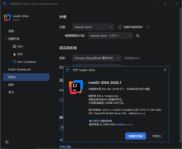 Jetbrains IntelliJ IDEA(Java集成开发环境) 2026.1 直装激活版
